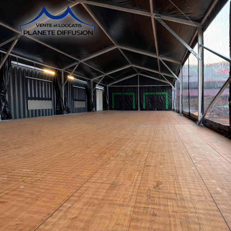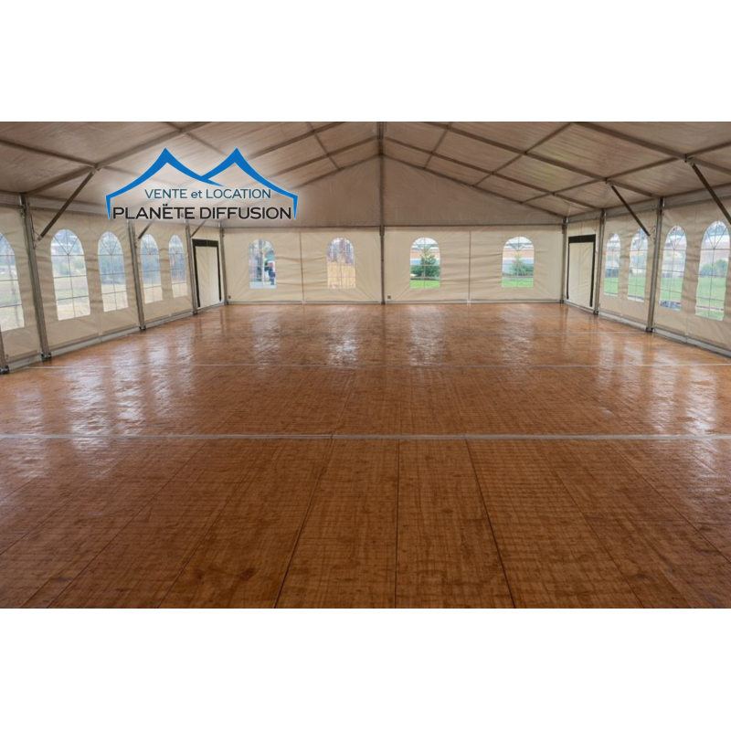 Plancher événementiel robuste et élégant, idéal pour chapiteaux et tentes de réception.