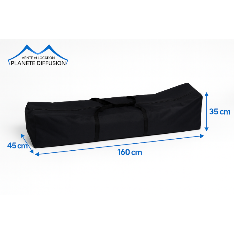 Sac de transport pour barnum pliant 3x6 m. Dimensions 160×65×38 cm. Idéal pour un usage occasionnel, rangement et transport faciles.